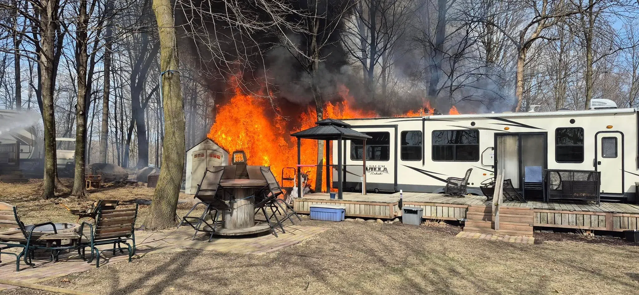 (KWNO)-A fire in Zumbrota on Wednesday evening engulfed several campers. First responders were called around 4:15 pm to the Shades of Sherwood Campground. When fire crews arrived, several campers were on fire. Zumbrota Police officers made sure the campers were unoccupied, and firefighters extinguished the fires. The cause of the fire is under investigation but according to the Zumbrota Fire Departments Facebook page it may have been caused by a discarded cigarette.