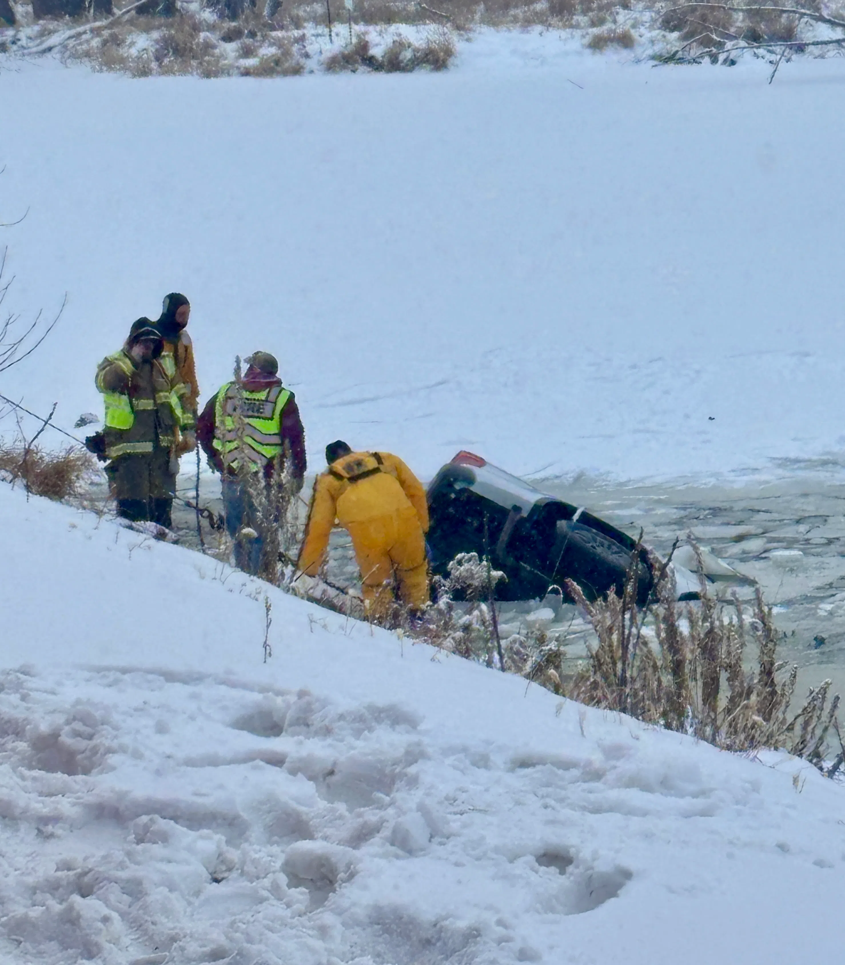 Bauer got out of the vehicle through a broken back window before it became completely submerged. He refused medical transportation.