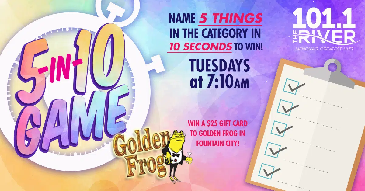 Listen to Paul Daly at 7:10 every Tuesday to play the 5 in 10 game, where you have 10 seco...